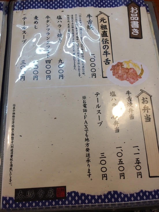 初日は食べログで評判の真助に行こうとするも、行列で2時間待ったところで、店の方が出てきてランチ終了との事。あまりの手際の悪さにやるせない思いで、夜は美味しい牛タンを、とタクシーの運転手のオススメを聞いて、数ある牛タンの店から選んだのが太助分店です。
